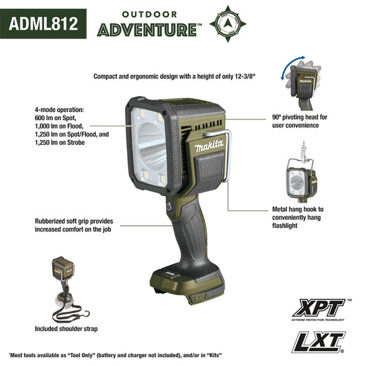 Makita ADML812 Outdoor Adventure™ 18V LXT® L.E.D. Flashlight/Spotlight, Light Only