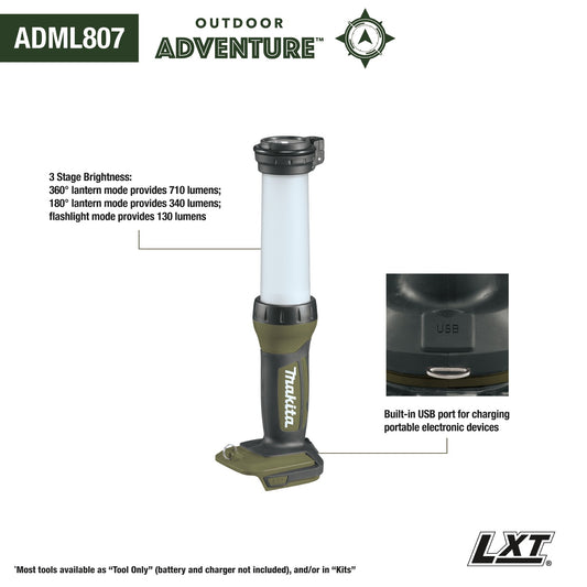 Makita ADML807 Outdoor Adventure™ 18V LXT® L.E.D. Lantern/Flashlight, Flashlight Only
