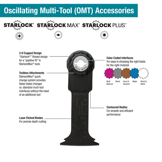 Makita E-08492 StarlockPlus® Oscillating Multi‑Tool 1‑1/4" Hard Metal with Tungsten Carbide Teeth Plunge Cut Blade for Metal Cutting