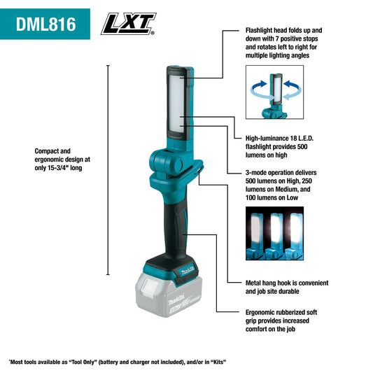 Makita DML816 18V LXT® Lithium‑Ion Cordless 18 L.E.D. Flashlight, Flashlight Only
