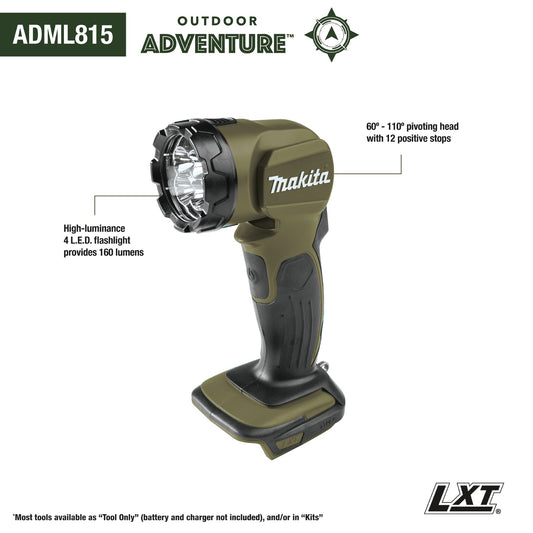 Makita ADML815 Outdoor Adventure™ 18V LXT® L.E.D. Flashlight, Flashlight Only
