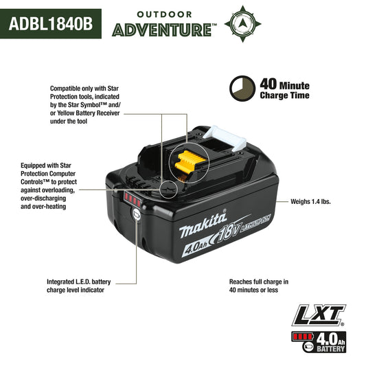 Makita ADBL1840BDC1 Outdoor Adventure™ 18V LXT® Lithium‑Ion Battery and Charger Starter Pack (4.0Ah)