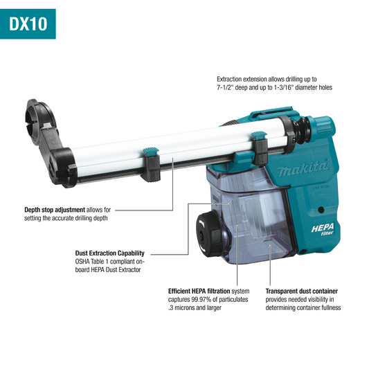 Makita DX10 Dust Extractor Attachment with HEPA Filter Cleaning Mechanism
