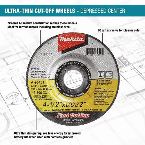 Makita A-96431 4‘1/2" x .032" x 7/8" Depressed Center Ultra Thin Cut‘Off Wheel, Stainless