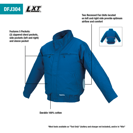 Makita DFJ304ZXL 18V LXT® Lithium‑Ion Cordless Cotton Fan Jacket, Jacket Only (XL)