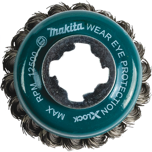 Makita D-72643 X‑LOCK 4‑1/2" Carbon Steel Full Cable Knotted Twist Wire Wheel