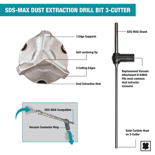 Makita B-63943 Vacuum Attachment, SDS‑MAX Dust Extraction Drill Bits