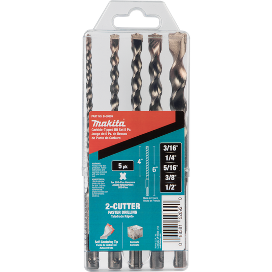Makita B-59243 5 Pc. Assorted SDS‑PLUS Drill Bit Set, Metal, Wood