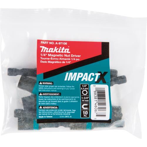 Makita A-97106 ImpactX™ 1/4″ x 1‑3/4″ Magnetic Nut Driver, 10/pk, Bulk