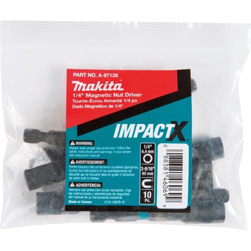 Makita A-97128 ImpactX™ 1/4″ x 2‑9/16″ Magnetic Nut Driver, 10/pk, Bulk