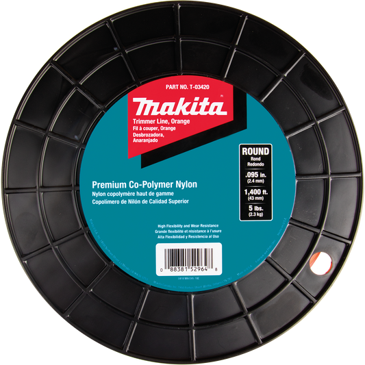 Makita T-03420 Round Trimmer Line, 0.095”, Orange, 1,400’, 5 lbs.