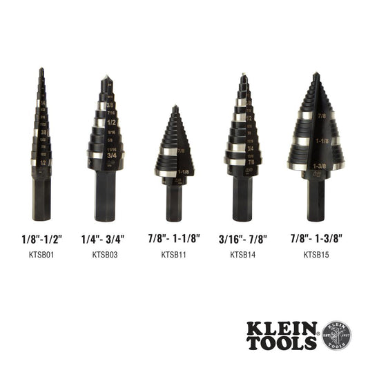 Klein Tools KTSB15 Step Drill Bit #15 Double Fluted 7/8 To 1-3/8-Inch