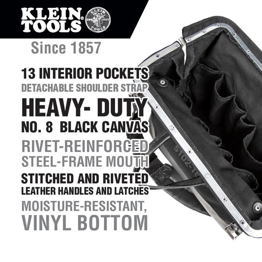 Klein Tools 510216SPBLK Deluxe Tool Bag, Black Canvas, 13 Pockets, 16-Inch