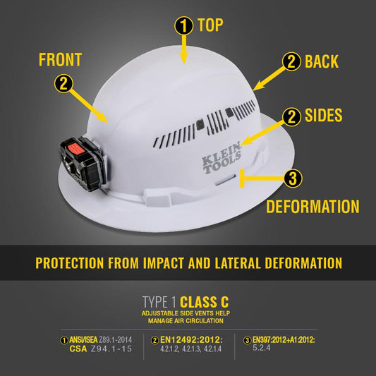 Klein Tools 60149 Safety Helmet, Vented-Class C, White
