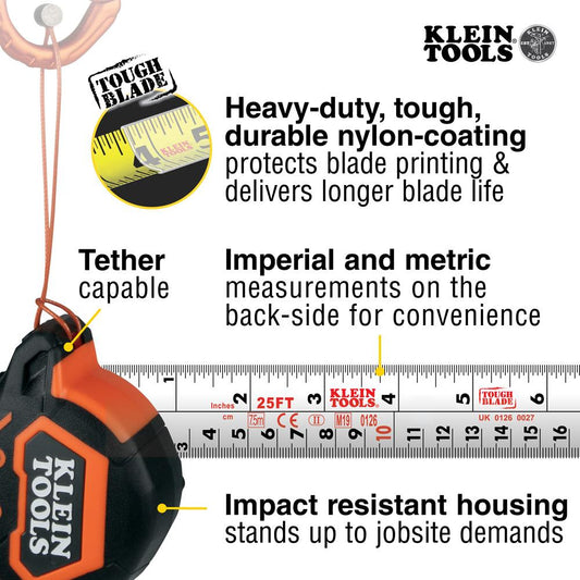 Klein Tools 9125 Tape Measure, 25-Foot Single-Hook