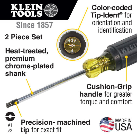 Klein Tools 85442 Screwdriver Set, 1/4 Keystone And #2 Phillips, Cushion-Grip, 2-Piece