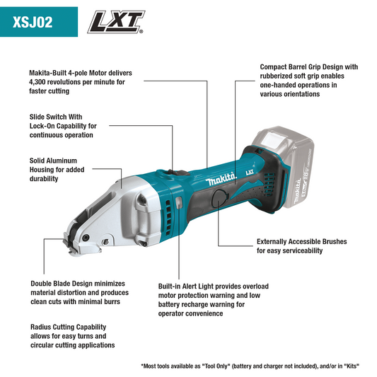Makita XSJ01Z 18V LXT® Lithium‑Ion Cordless 18 Gauge Straight Shear, Tool Only