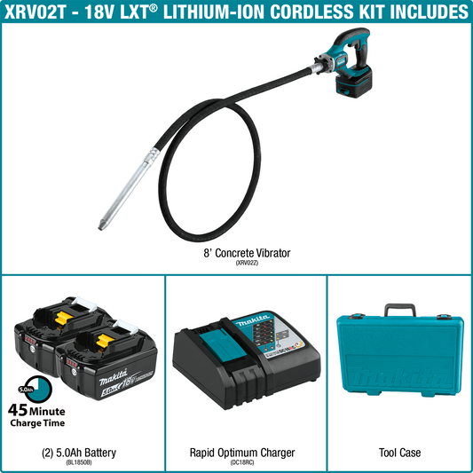 Makita XRV02T 18V LXT® Lithium‑Ion Cordless 8' Concrete Vibrator Kit (5.0Ah)