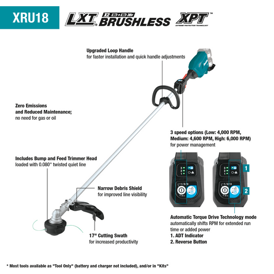 Makita XRU18Z 36V (18V X2) LXT® Brushless String Trimmer, Tool Only