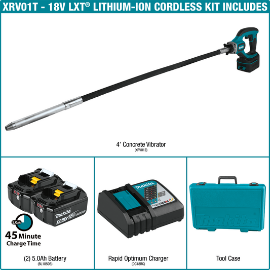 Makita XRV01T 18V LXT® Lithium‑Ion Cordless 4' Concrete Vibrator Kit (5.0Ah)