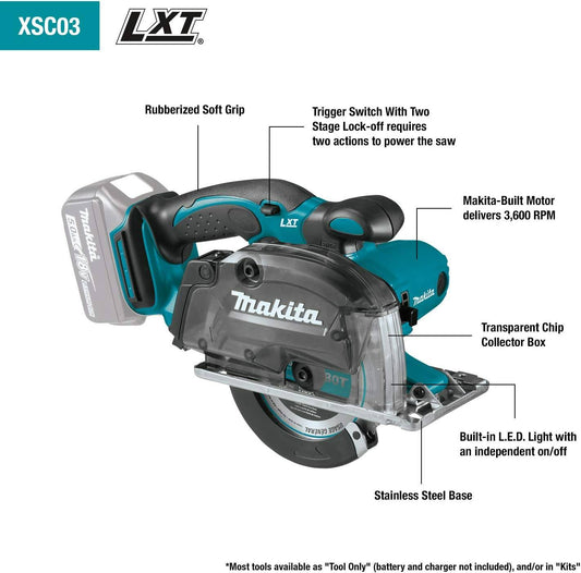 Makita XSC03Z 18V LXT® Lithium‑Ion Cordless 5‑3/8" Metal Cutting Saw, with Electric Brake and Chip Collector, Tool Only