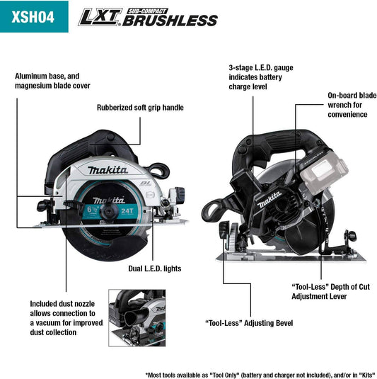 Makita XSH04RB 18V LXT® Lithium‑Ion Sub‑Compact Brushless Cordless 6‑1/2” Circular Saw Kit (2.0Ah)