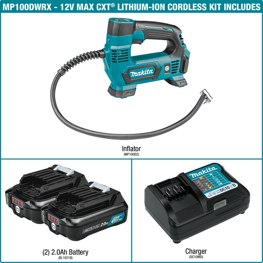 Makita MP100DWRX1 12V max CXT® Lithium‑Ion Cordless Inflator Kit (2.0Ah)