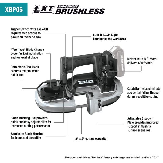 Makita XBP05ZB 18V LXT® Lithium‑Ion Sub‑Compact Brushless Cordless Band Saw, Tool Only