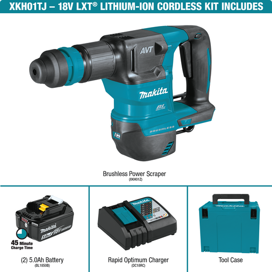 Makita XKH01TJ 18V LXT® Lithium‑Ion Brushless Cordless SDS‑PLUS AVT® Power Scraper Kit (5.0Ah)