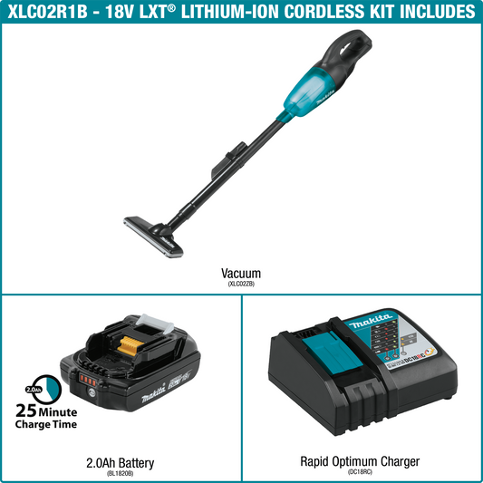 Makita XLC02R1B 18V LXT® Lithium‑Ion Compact Cordless Vacuum Kit (2.0Ah)