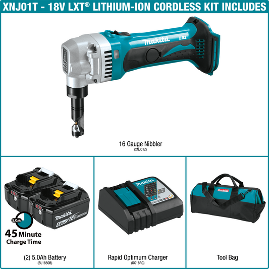 Makita XNJ01T 18V LXT® Lithium‑Ion Cordless 16 Gauge Nibbler Kit (5.0Ah)