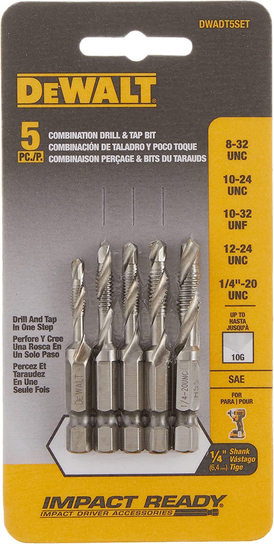 Dewalt DWADTQTR5SET Drill Tap Set 1/4" Capacity (5 Pc)
