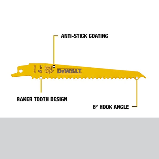 Dewalt DW4802N25 6" 6 Tpi Taper Back Bi-Metal Reciprocating Blade For General Purpose Wood Cutting