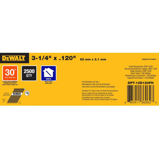 Dewalt DPT-12D120FH 3" X .131" Paper Tape 30° Smooth Bright Off-Set Round Head
