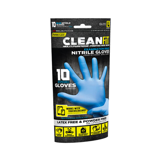 Ironclad M02008 L- (Blue)-5Mil-10 pk, CLEAN-FIT DISPOSABLE NITRILE GLOVES-POWDER-FREE