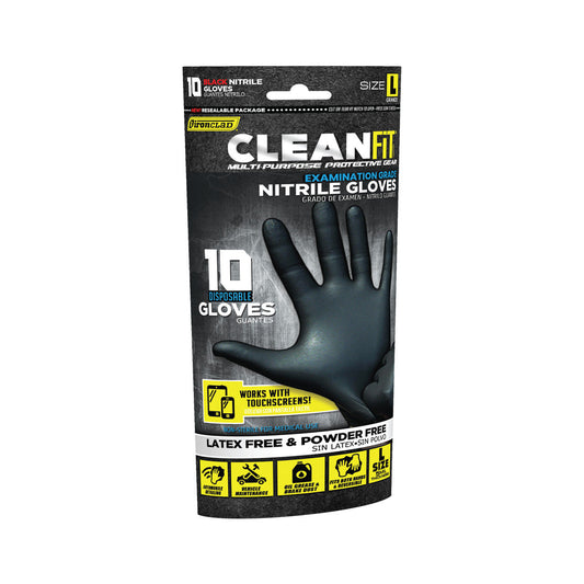 Ironclad M02013 L- (Black)-5Mi-10 pk, CLEAN-FIT DISPOSABLE NITRILE GLOVES-POWDER-FREE