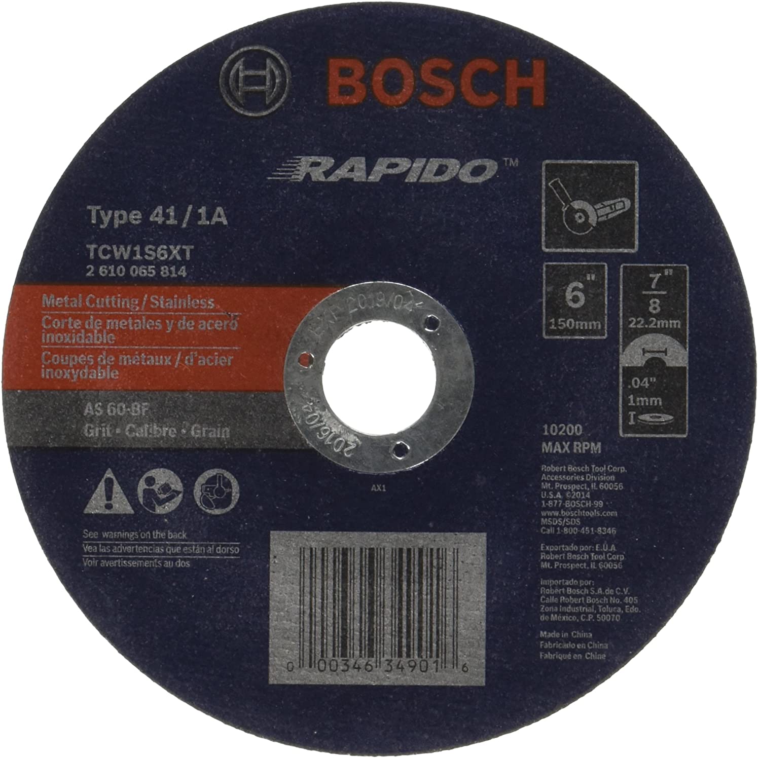Bosch TCW1S6XT 6 X .040 X 7/8 Type 1 Thin Cutting Disc As60Inox-Bf For Stainless/Metal (Bulk)