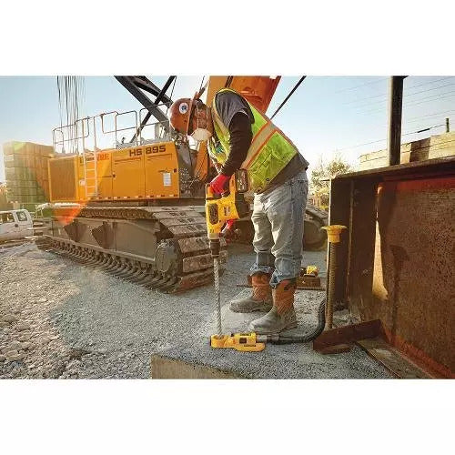The 60V MAX* 1-9/16 in. Brushless SDS MAX Combination Rotary Hammer is a light weight, high-performance hammer that is powered by a brushless motor and a durable German engineered mechanism. It delivers 6.1 Joules of impact energy for fast drilling and chipping, even in the hardest concrete. The constant speed electronics allow the tool to maintain speed under load. The light weight design makes it ideally suited for horizontal drilling for #3 - #6 rebar dowel applications, dry coring up to 3 in., and chipping in any mid to upper wall and ceiling. This hammer is part of the PERFORM & PROTECT™ product line, integrated with the Anti-Rotation E-CLUTCH® System and the SHOCKS Active Vibration Control® System. E-CLUTCH® shuts down the tool in bind up situations. SHOCKS® reduces vibration felt by the user at the handles, compared to rotary hammers without this feature. This tool comes Tag Ready™ so users and companies can attach the DEWALT Tag™ and track its location virtually anywhere via the DEWALT Tool Connect™ app.
