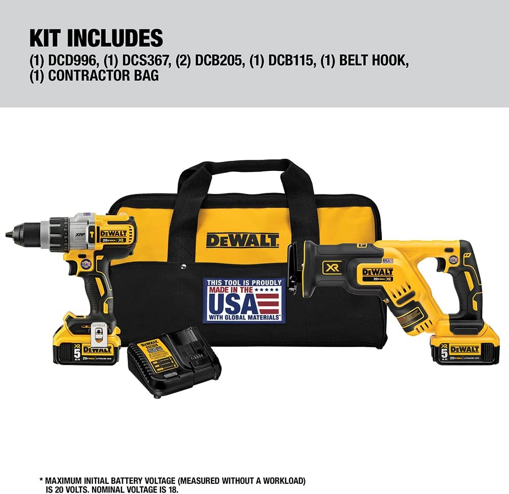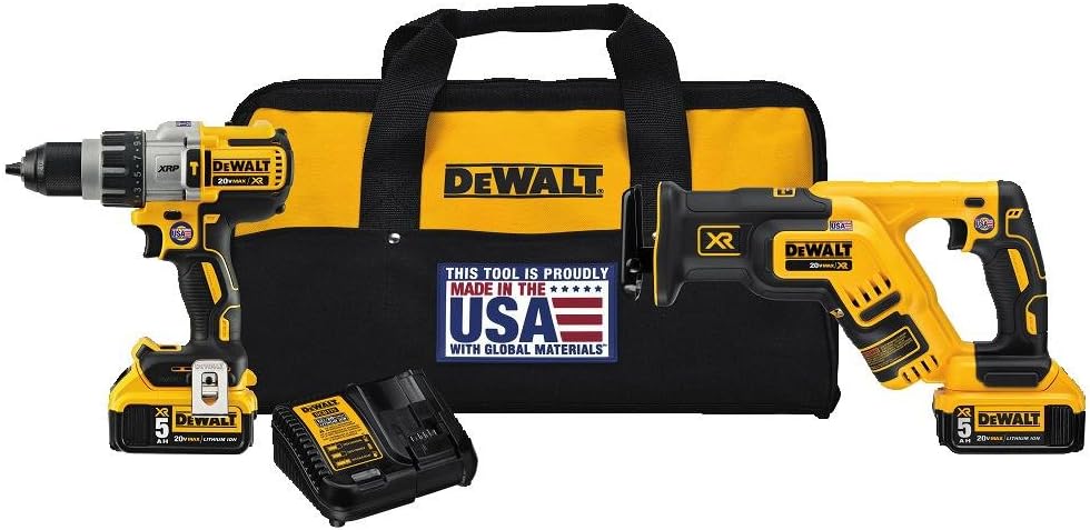 This 20V MAX* 2-Tool cordless brushless XR® combo kit features our hammerdrill/driver, compact reciprocating saw, two 20V MAX* lithium ion 5.0ah batteries, charger, and tool bag. The hammerdrill/driver has a 3-speed transmission and powerful brushless motor that delivers u to 75% more runtime vs. 18V NiCad brushed motors. Compact Reciprocating Saw has a compact lightweight design for making cuts in confined spaces like in between studs.