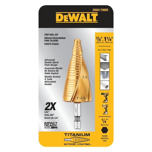 Dewalt DWA1789IR 7/8 In - 1-1/8 In Impact Ready® Titanium Nitride Coating Step Drill Bit Set