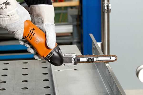- Start-Set with offset and straight grinding arms for varied applications, ceramic grinding belts for efficient weld seam processing, and fleece belts in various widths for finishing work.