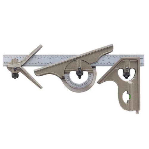 The #MG-S281-4R Combination Square with Locating Device can determine 90° and 45° angles and measure distances up to 1 ft./305mm. It's a favorite of toolmakers and machinists.