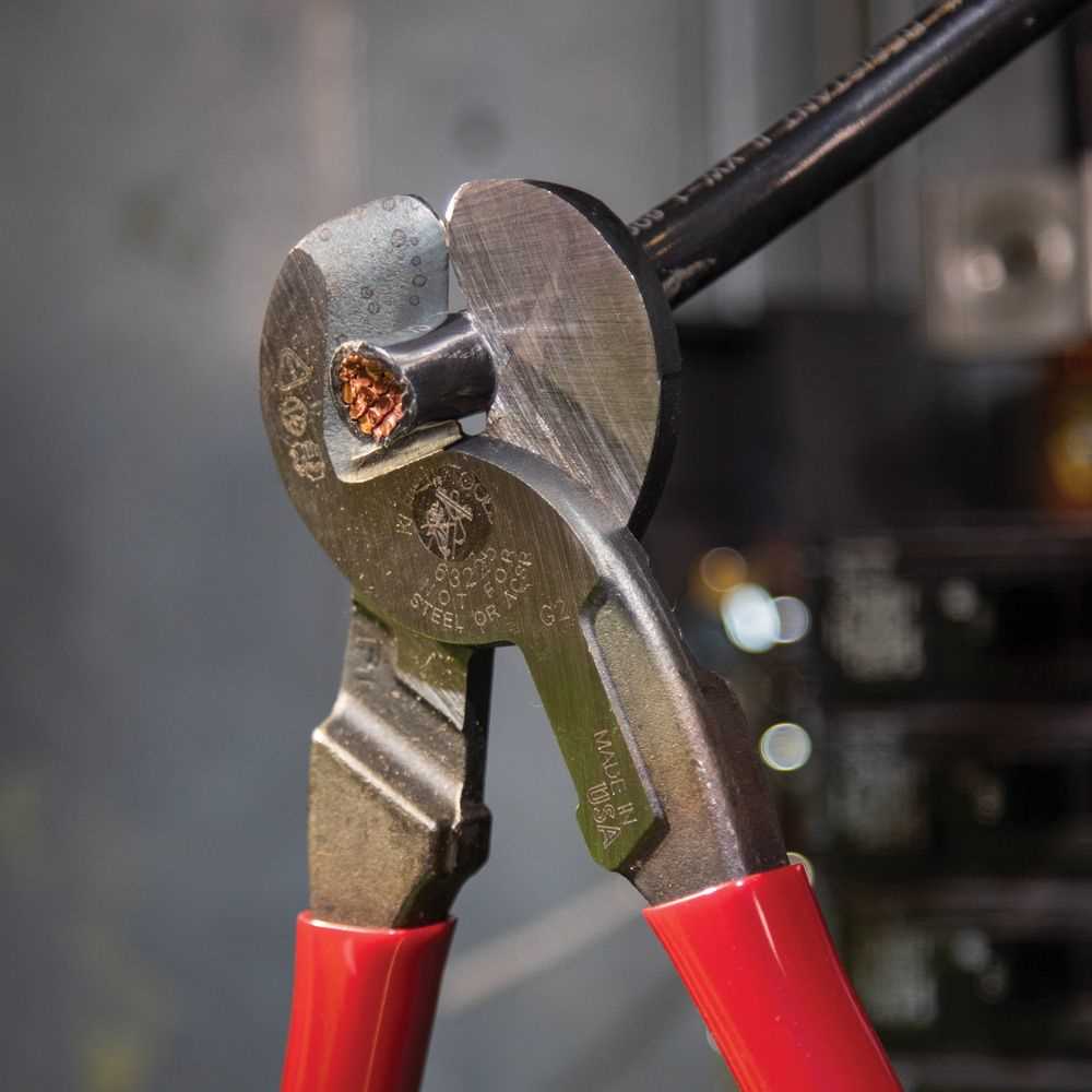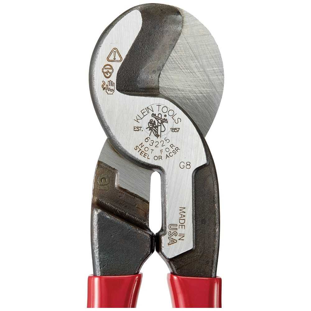 This high-leverage cable cutter cuts aluminum, copper and communications cable. Cable-gripping shear-type jaws and a high-leverage design translate to 30% less force needed to cut as compared to Klein's 63050 model. Through-hardened, not case-hardened, cutting surfaces increase the durability and life of this tool.