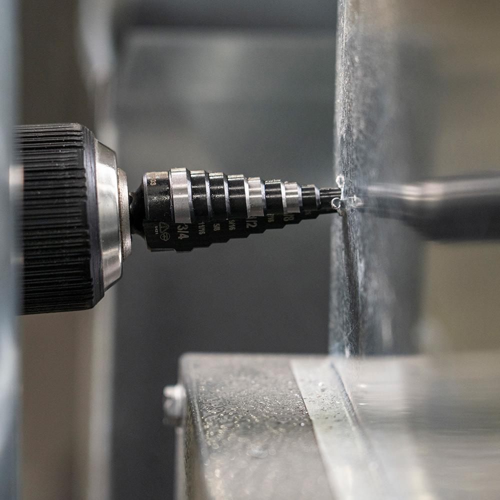 - Two flutes on this Step Drill Bit cut faster and keep bit cooler