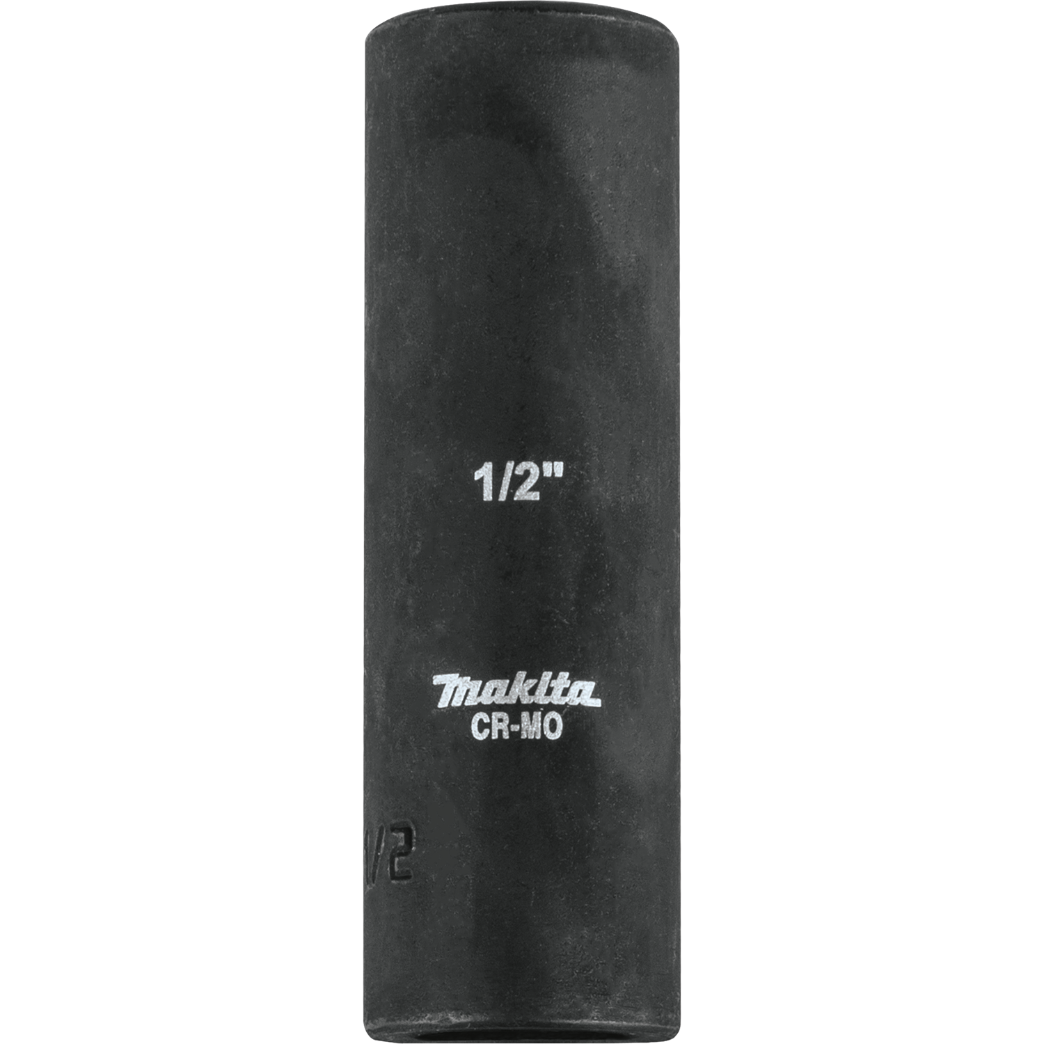 Makita Deep Well Impact Sockets are the perfect accessory for a high torque impact wrench when taking on demanding applications like driving large lags through support beams, setting anchors, and removing stuck weather-rusted nuts. Makita Deep Well Impact Sockets are constructed with Chromium-Molybdenum Steel (CR-MO) and black oxide coated for longer life. The sockets have a 2-1/2” length for longer reach and the ability to fasten over longer threads. They are engineered for use with high-torque impact wrenches, and can also be used with impact drivers (adapter required, sold separately) and ratchets. Makita Deep Well Impact Sockets are ideal for tilt-up contractors, formers, framers, deck builders, and more.