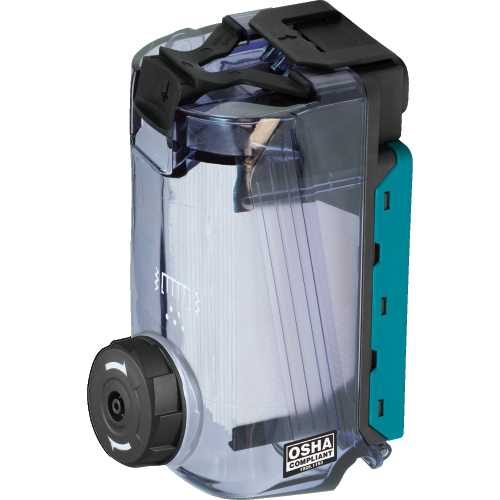 The Dust Case with HEPA Filter Cleaning Mechanism is compatible with On-Board Dust Extractors models DX08, and DX09 for OSHA Table 1 compliance and improved dust extraction. The HEPA filter captures 99.75% of dust particles (size .3 microns and larger). The high-capacity dust container is clear and provides an accurate level indicator of collected material. The container also has the largest material holding capacity in its class with faster and more convenient disposal of material than leading competitor models for less downtime. The dust container has a quick release and can be easily detached from the dust collection attachment when needed.