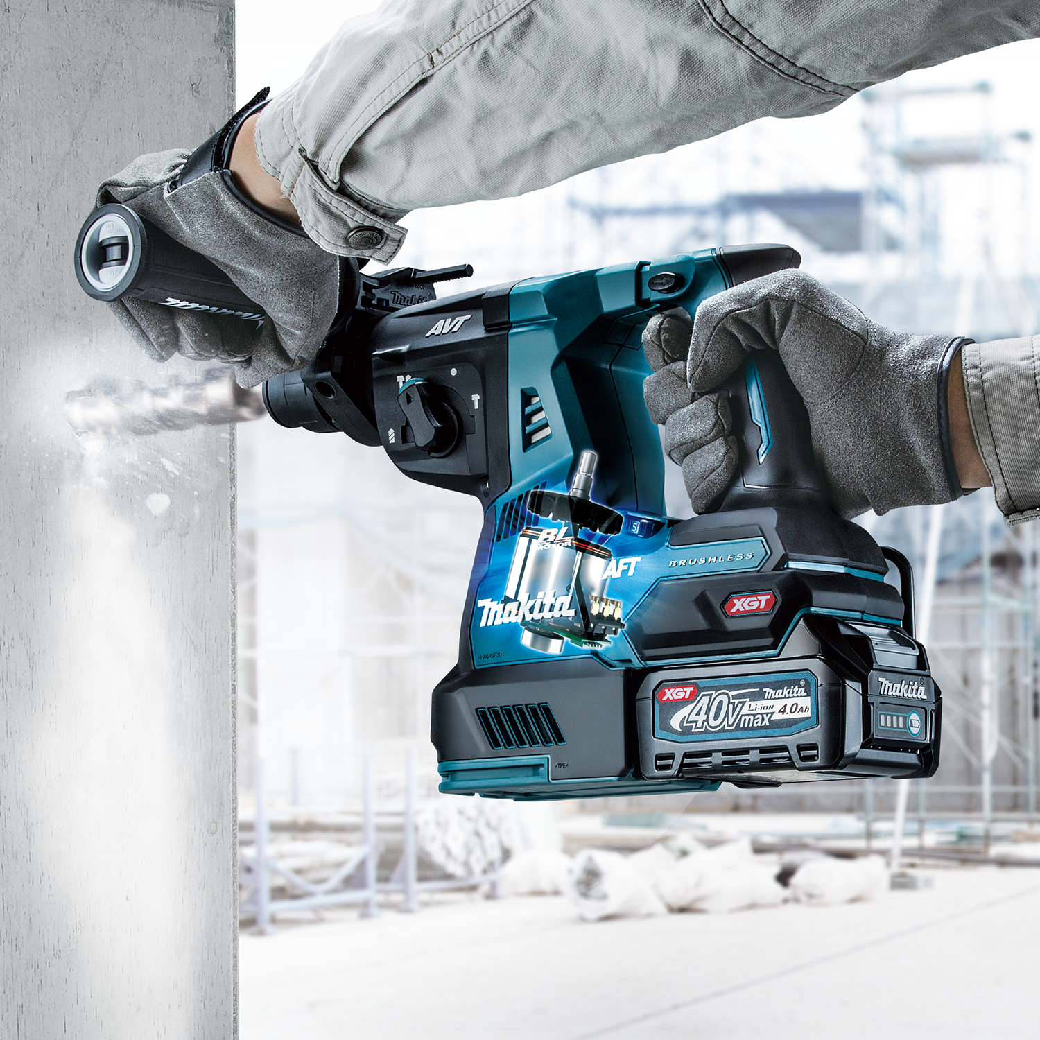 The 40V max XGT® Brushless 1-1/8 AVT® Rotary Hammer Kit (GRH01M1) is a cordless concrete solution designed for heavy-load applications. It delivers the power, speed, and run-time for corded demands, without the cord. XGT technology delivers up to 135 of 3/8 holes per charge when using one 40V max XGT 4.0Ah Battery.