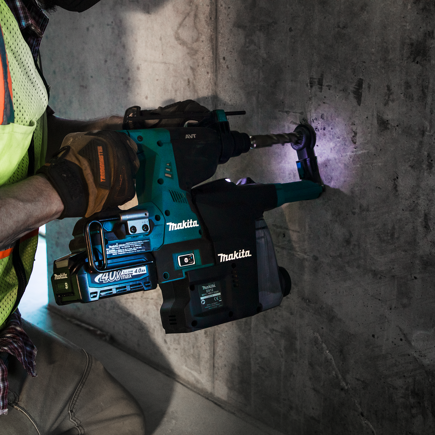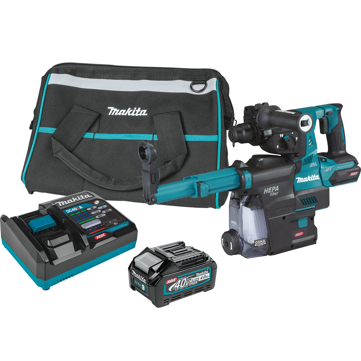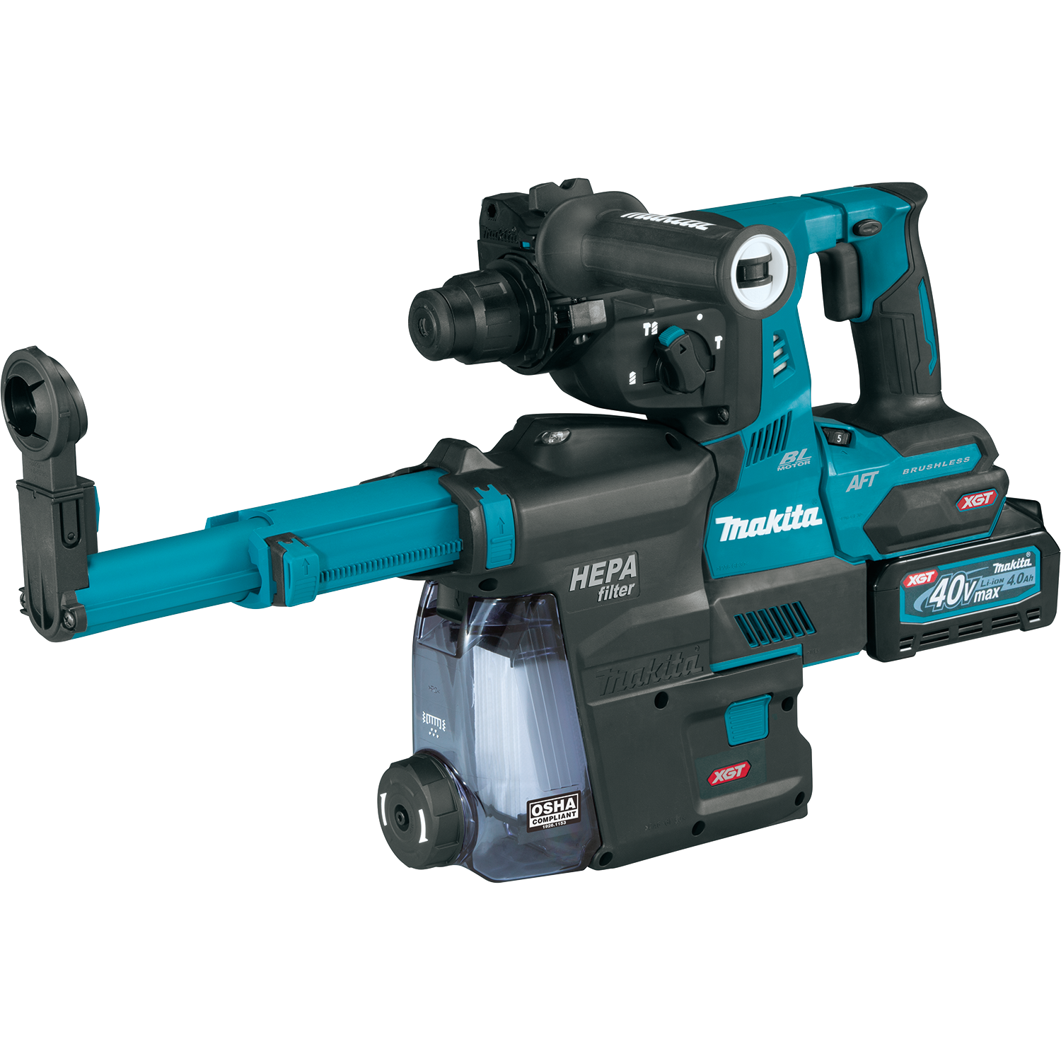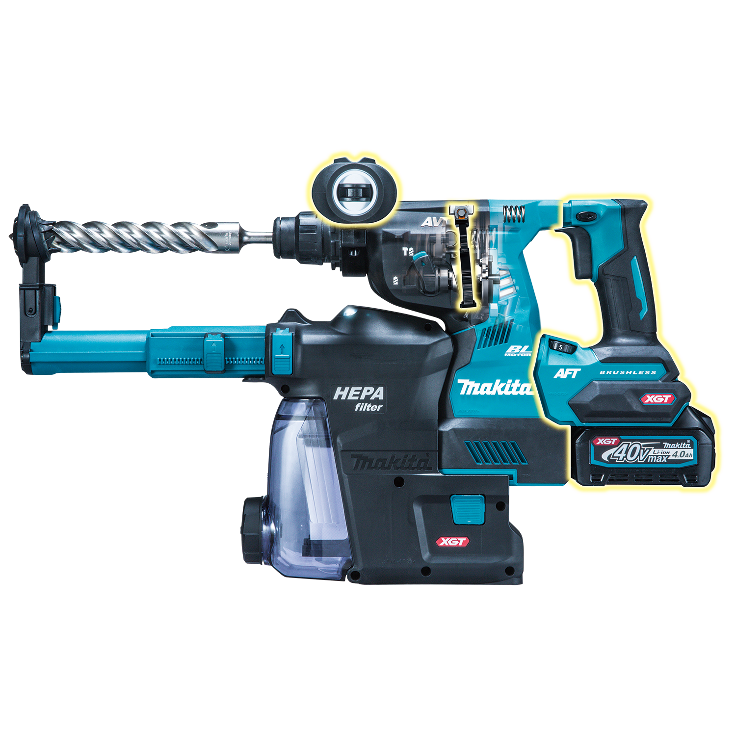 Makita GRH01M1W 40V max XGT® Brushless Cordless 1‑1/8" SDS‑PLUS AVT® Rotary Hammer Kit w/ Dust Extractor, AFT®, AWS® Capable (4.0Ah)