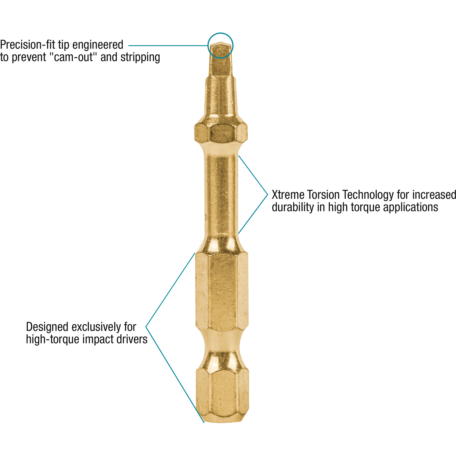 - INCLUDES : Impact GOLD® #2 Square Recess Power Bit, 2/pk
