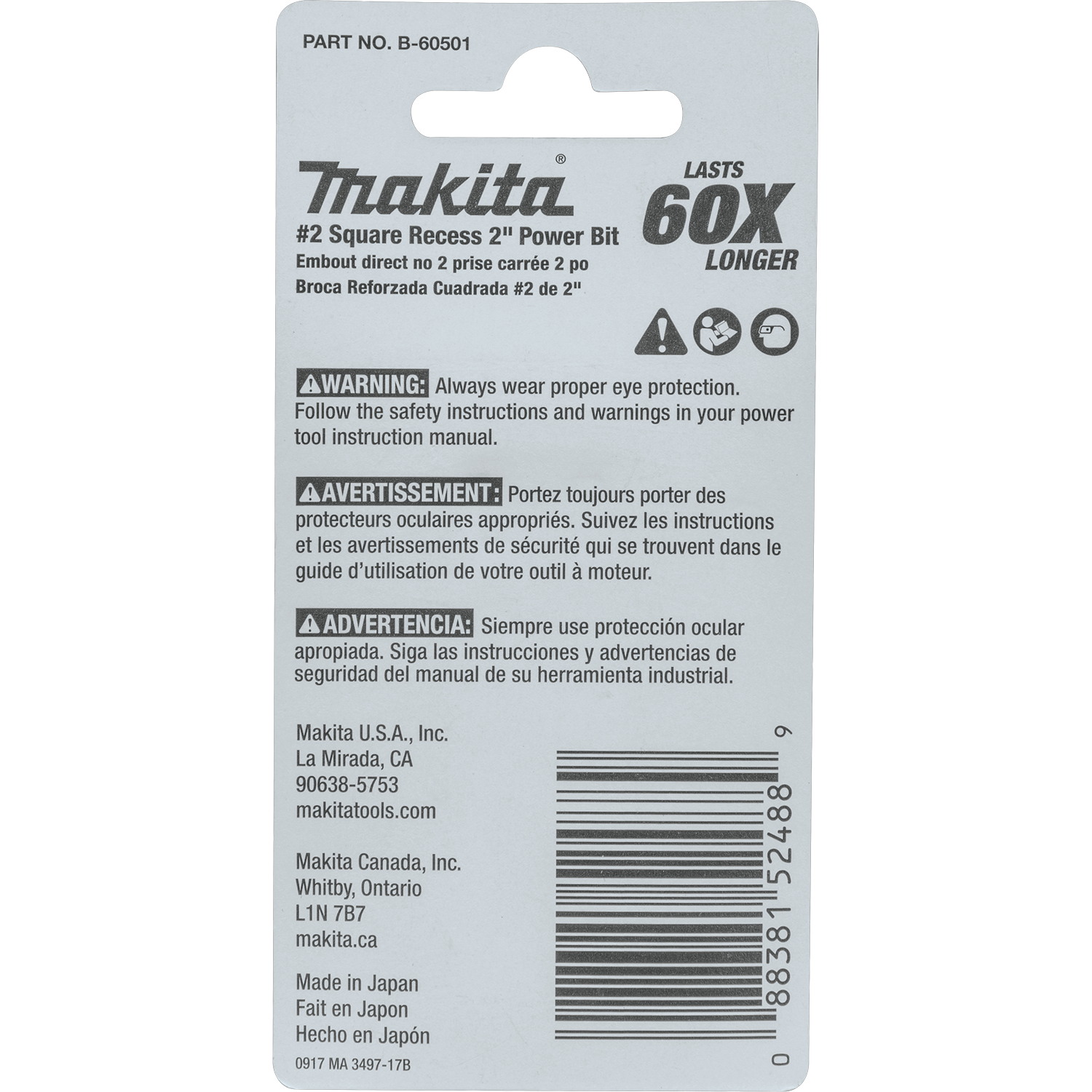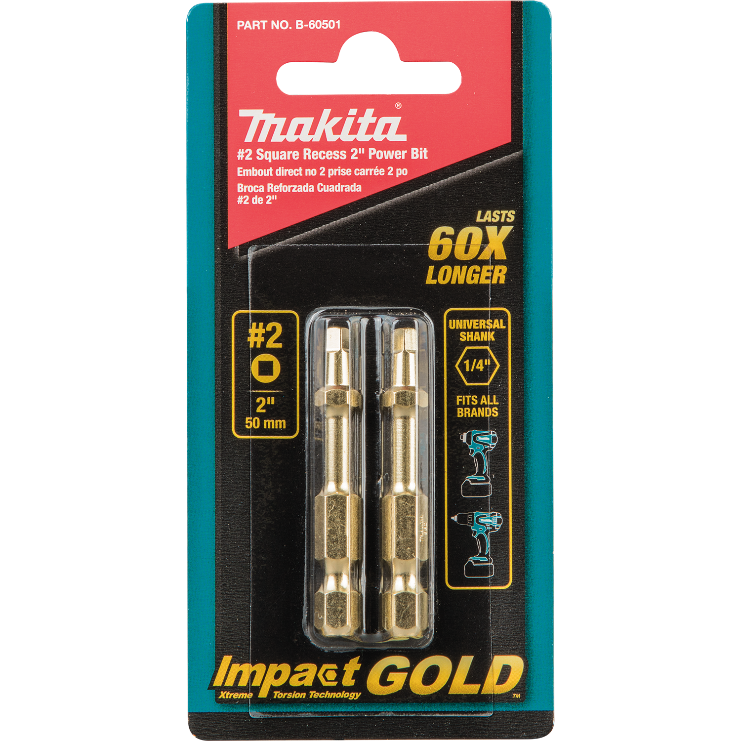 Makita B-60501 Impact GOLD® #2 Square Recess 2³ Power Bit, 2/pk